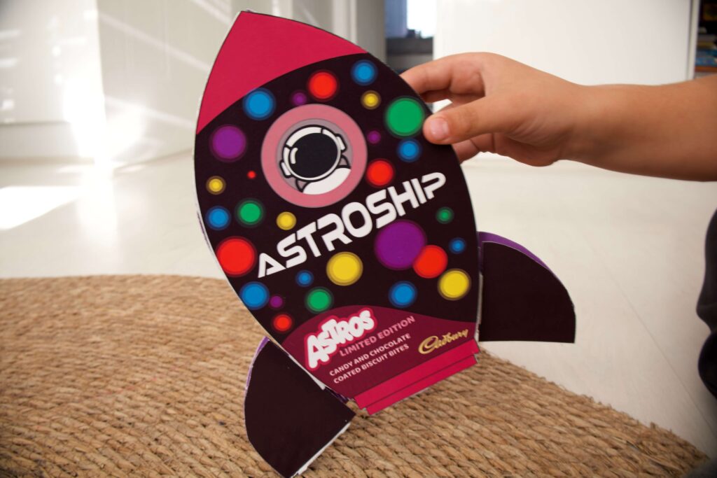 Astroship is a playful and sustainable redesign of South Africa’s iconic Astros chocolate. Inspired by the magic of space travel, this limited-edition packaging transforms into a rocket ship toy once the candy is finished - giving the packaging an imaginative afterlife.